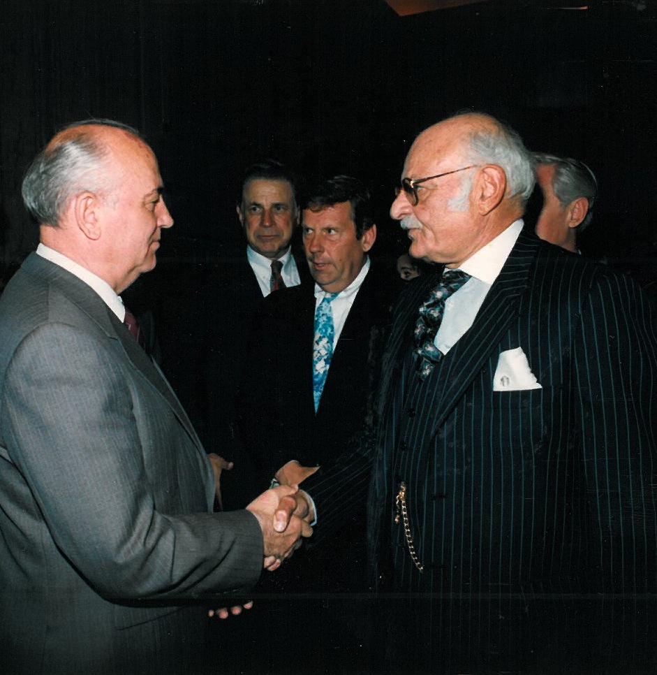 Dr. Feinberg shaking hands with Soviet statesman Mikhail Gorbachev.