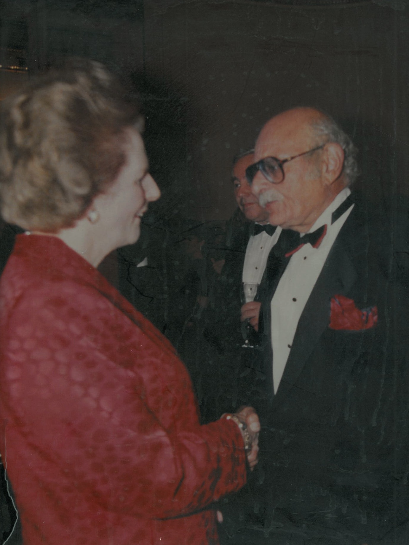 British Prime Minister Margaret Thatcher shaking hands with Dr. Feinberg.