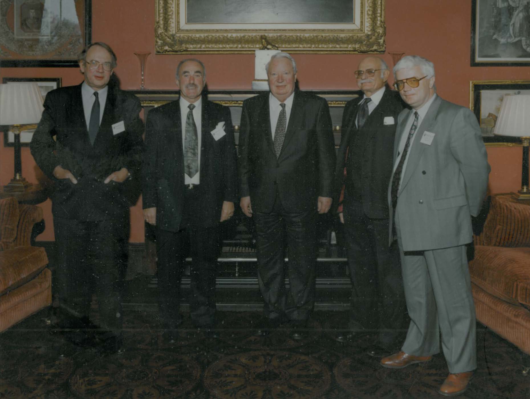 Dr. Feinberg is posing with former Prime Minister Heath.